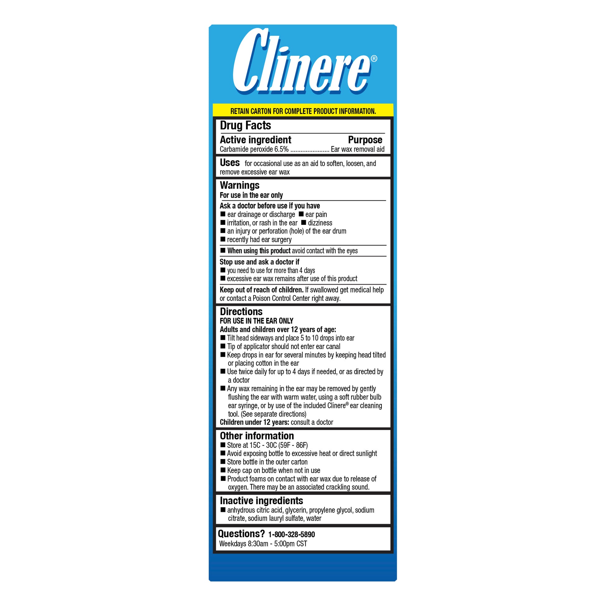 Clinere® Earwax Removal Kit is designed to provide a safer, gentler, and more effective ear clean than traditional cotton swabs. The kit includes 0.5 Fl Oz Carbamide Peroxide Earwax Removal Drops and 4 Clinere® Ear Cleaners, each equipped with a small, soft scoop and a flexible fin. The scoop end safely removes earwax and debris and the flexible finned ends provides itch relief and gentle exfoliation, ensuring cleaner, healthier ears.